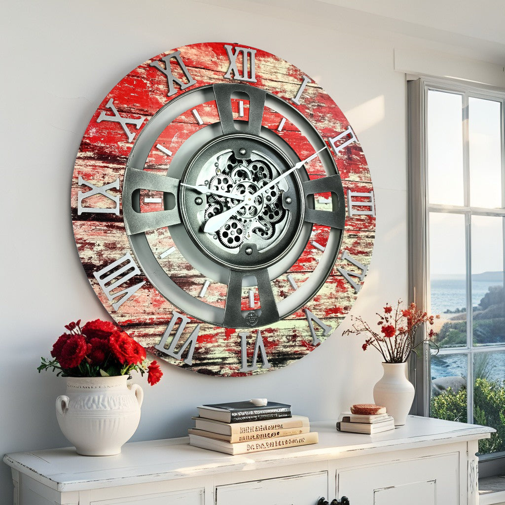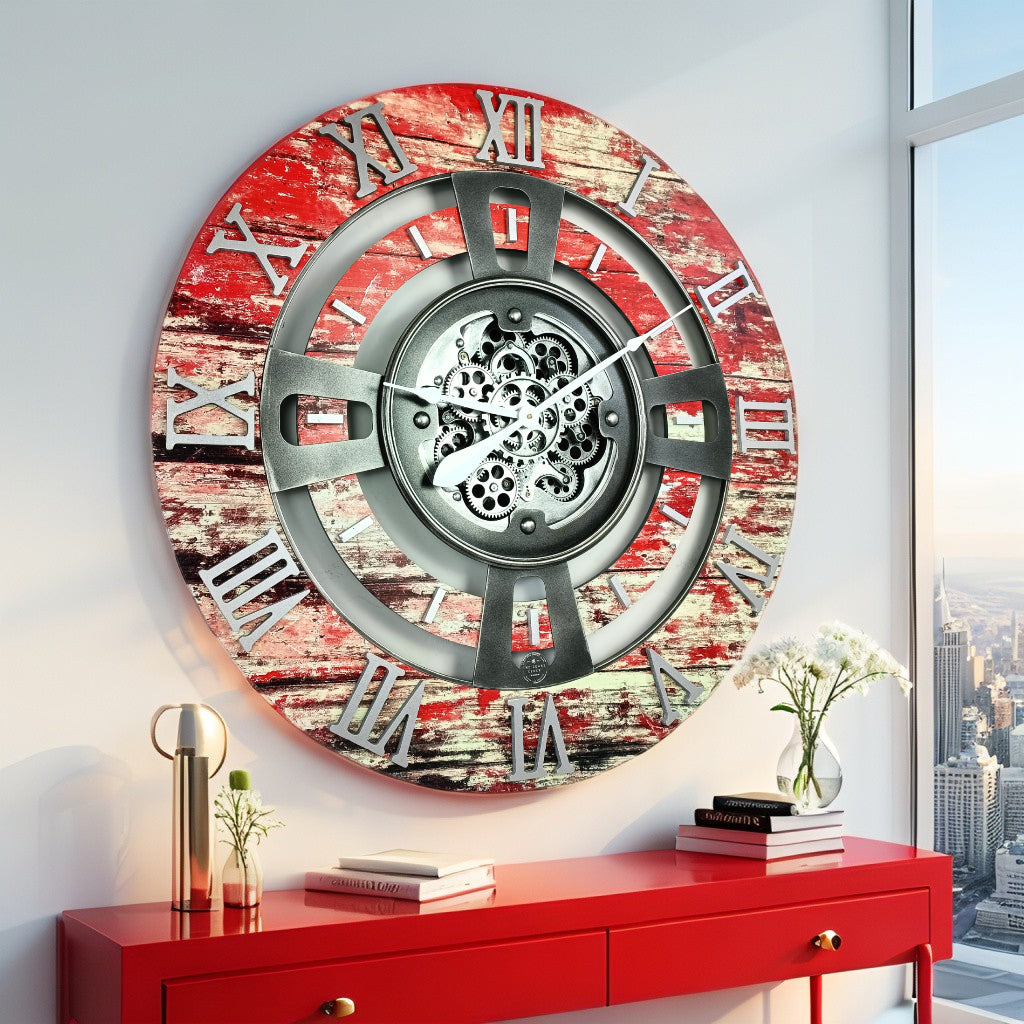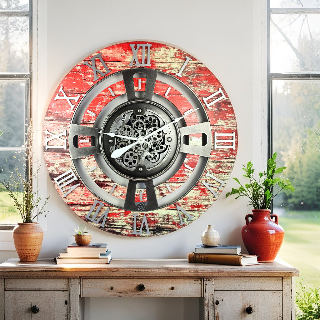 ENGLAND LINE SEINÄKELLO PYÖREÄ 36 TUUMINEN PUNAINEN LAVA